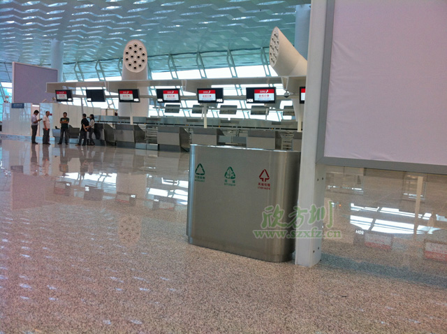 為了裝飾寶安國際機(jī)場T3航站樓和GTC大樓的環(huán)境衛(wèi)生,深圳市機(jī)場股份有限公司于2013年4月在我公司訂購了2733個垃圾桶,包括有大型不銹鋼垃圾桶、自棄桶、阻燃桶和接水桶等多種材質(zhì)的垃圾桶。