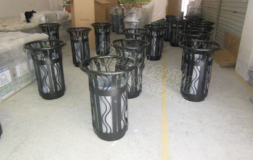客戶訂購的這款F01花籃垃圾桶,名稱也叫鋼制垃圾桶?;ɑ@式戶外垃圾桶頂圈圓管用35mm,厚1.5mm,扁鋼用厚度3.0mm,寬30mmm,花籃式戶外垃圾桶桶身上下圈厚度3.0mm*高65mm.花籃式戶外垃圾桶內(nèi)桶分別用塑料桶或者玻璃鋼兩種材質(zhì)。外觀呈花籃,整個形狀有點像打籃球的投籃口。學校的女同學,投遞垃圾時可以練習投籃,不在怕投不上高高的籃球架上去。環(huán)保與娛樂相結(jié)合,為校園添加不少樂趣。
