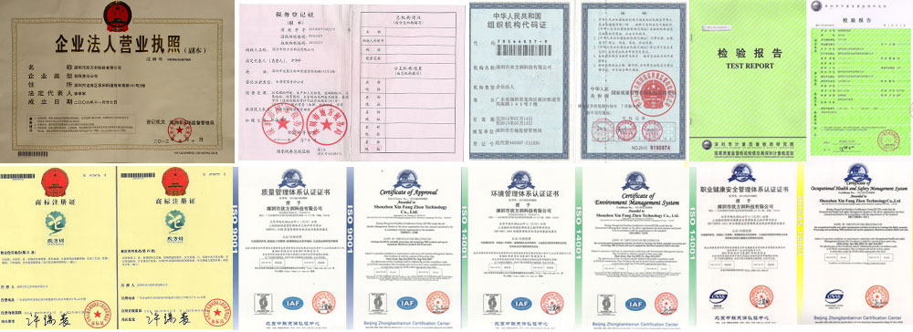 欣方圳營業(yè)執(zhí)照、稅務(wù)登記證、組織機(jī)構(gòu)代碼證,垃圾桶檢驗(yàn)報告資質(zhì),“欣方圳”注冊商標(biāo),信息安全管理、知識產(chǎn)權(quán)管理、ISO9001:2015、ISO14001:2015、OHSAS18001認(rèn)證企業(yè)