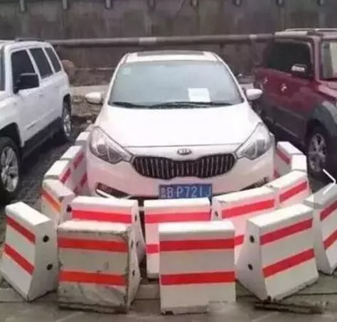2016年6月,武漢一輛紅色雪弗蘭轎車(chē)的前后方被幾個(gè)大石墩圍住,該車(chē)主的停車(chē)位置靠近地下車(chē)庫(kù)出口,是消防通道,不能停車(chē)。此前物業(yè)曾多次勸阻和警告其不能在此停車(chē),他卻并不聽(tīng)勸,只能出此“下策”。