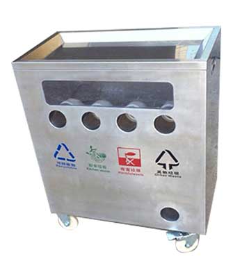 小區(qū)垃圾分類站點(diǎn)四類垃圾分類垃圾桶,不銹鋼無(wú)疑是較為理想的材質(zhì)。它戶外防銹蝕效果好,表面金屬光澤高檔美觀,污漬也易清理。不銹鋼分類桶產(chǎn)品款式造型易定制,不受尺寸大小限制,滿足個(gè)性化需求,擺放于惠