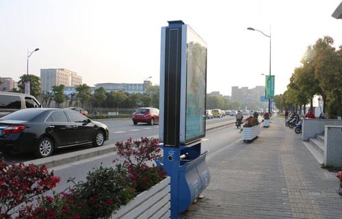 大街上出現(xiàn)智能太陽能垃圾箱