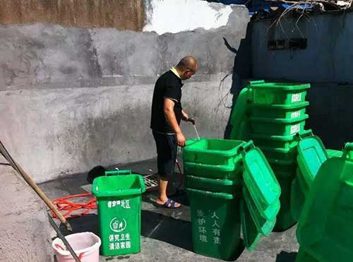 該垃圾桶清洗點選在小區(qū)廢棄操場的一角,原本被居民作為停車場,現(xiàn)在劃出10平方米鋪設(shè)排水管道,裝了壓水泵,還請了一名清潔人員專門負(fù)責(zé)清洗垃圾桶.接下去,金棉小區(qū)和虞家路農(nóng)村片近200個垃圾桶,將三天“洗一次澡”。此外,眉山、陽明、金山等社區(qū)“洗澡池”也已“營業(yè)”。