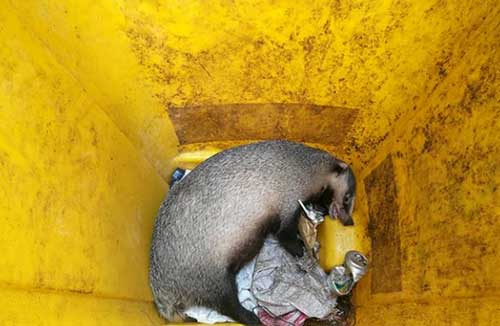 9月11日上午7點(diǎn)左右,南京鼓樓區(qū)建寧路200號(hào)附近一居民小區(qū),保潔員周某報(bào)警,稱她在小區(qū)垃圾箱內(nèi)發(fā)現(xiàn)一只疑似已懷孕的不知名野生動(dòng)物,看上去很兇,現(xiàn)在被困桶內(nèi)無法出來,報(bào)警求助,接警后民警隨后趕至現(xiàn)場(chǎng)。