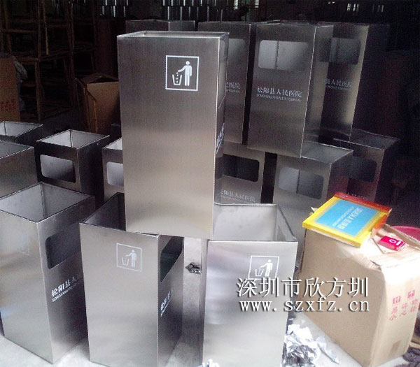 這批不銹鋼垃圾桶外觀為方形,采用201不銹鋼材質(zhì)模壓而成,桶頭厚度足0.8毫米,桶身厚度也有0.6毫米,內(nèi)部配0.4毫米的鍍鋅板內(nèi)膽,耐酸耐堿、密度高,使用周期長,表面光滑不割手,且絲印有人頭標識和松陽縣人民醫(yī)院的字樣,完全為客戶量身打造的專屬產(chǎn)品! 產(chǎn)品完成后的包裝方面,我公司采用木架跟紙箱的方式,先用木架固定不銹鋼垃圾桶,然后再統(tǒng)一紙箱包裝,最大限度的避免垃圾桶不被碰損和刮傷!