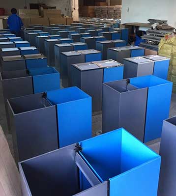 欣方圳商場分類垃圾桶桶身防腐防蝕選用優(yōu)質(zhì)戶外塑粉經(jīng)靜電噴塑工藝,色澤亮麗,戶外長期使用也能歷久彌新。