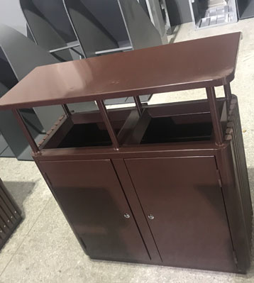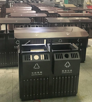 欣方圳景區(qū)戶外鋼木分類垃圾桶批量生產(chǎn)圖