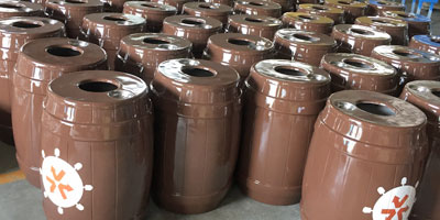 玻璃鋼仿木桶分類垃圾桶打造北海水樂園原生態(tài)景區(qū)