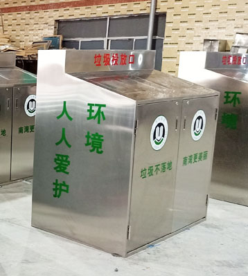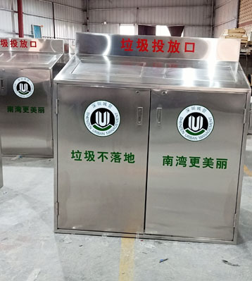 • 產(chǎn)品材質(zhì):大容量室外用垃圾筒采用足1.2厚304#優(yōu)質(zhì)不銹鋼材料經(jīng)激光切割、數(shù)控折彎、焊接等一系列鈑金工藝成型,堅固耐用,不易破損;耐火安全,抗高低溫,適合各種惡劣氣候條件;金屬亮澤 ,高雅美觀,廣泛適用于各種場所;內(nèi)外表面光潔,減少垃圾殘留,易于清潔;配置大容量塑料內(nèi)桶,可上掛車收運解放環(huán)衛(wèi)工人勞力;