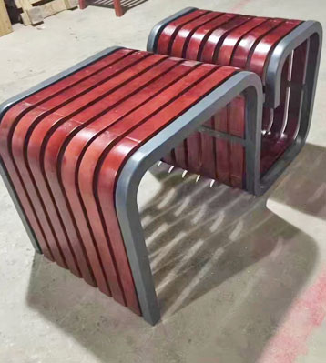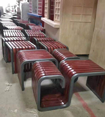 戶外藝術(shù)造型鋼制環(huán)保休閑椅椅面原材料采用真空泵排除空氣、填充防腐液、加壓滲透、抽真空排出多余防腐液達(dá)到先進(jìn)的防腐防蟲工藝。
