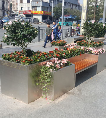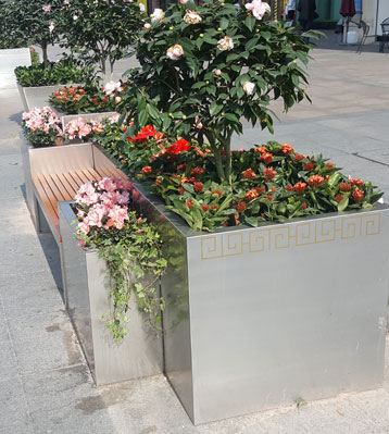 戶外不銹鋼大花箱景觀花槽坐凳組合定制廠家