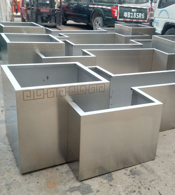 不銹鋼金屬花盆花箱工廠生產圖