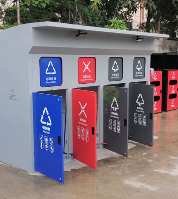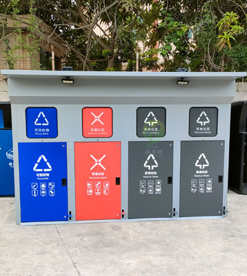 • 使用范圍:小區(qū)生活垃圾分類投放屋應(yīng)用于花園小區(qū)垃圾分類、物業(yè)社區(qū)、居民樓院、社區(qū)街道、單位庭院等場所分類垃圾收集。