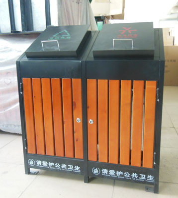 欣方圳戶外廣場(chǎng)鋼木分類垃圾桶原材料