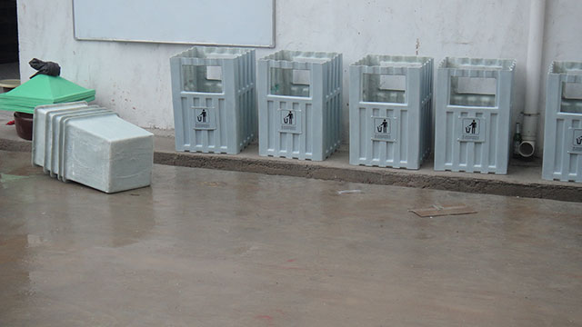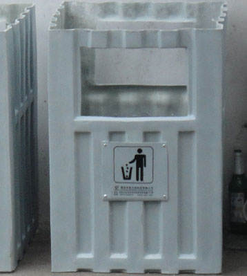 玻璃鋼垃圾桶桶身和內(nèi)膽部分,采用高級(jí)玻璃鋼材質(zhì)一次成型,經(jīng)過(guò)打磨、除塵 、噴漆等一系列后期工藝然后出成品。